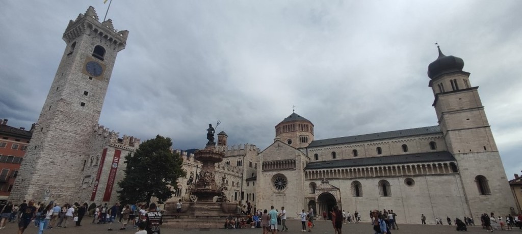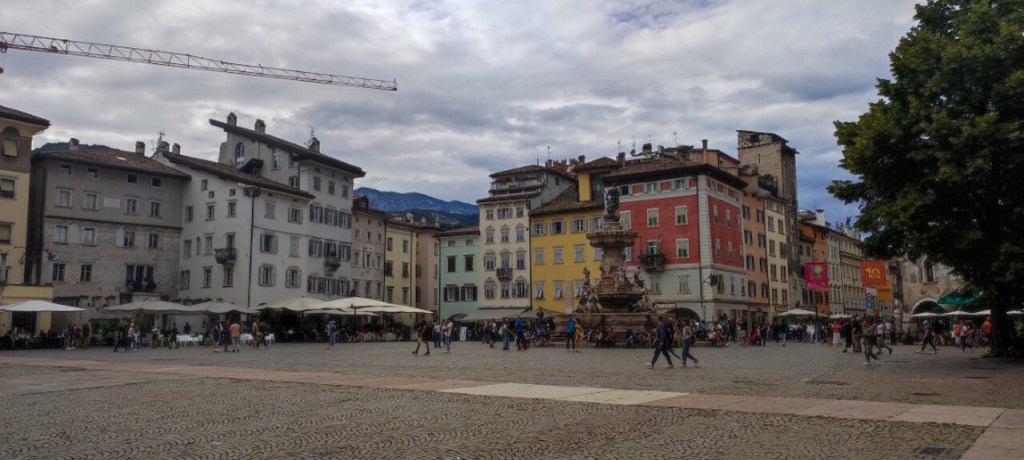 Salimos a las 7 de la mañana y llegamos allí a las 9 y 30. Llegamos y nos vamos a coger un taxi que nos lleva cerca de donde vamos a recoger el coche en Morini Rent a Car en el centro, pero como es temprano, dejamos las maletas preparadas en donde el coche y vamos a desayunar. A las 12 ya hemos desayunado y cogido el coche y tiramos para Bolzano pero paramos en Trento en el camino. Trento es una ciudad muy bonita. Os dejamos aquí algunas fotos: