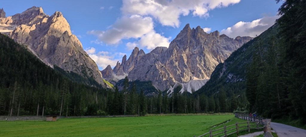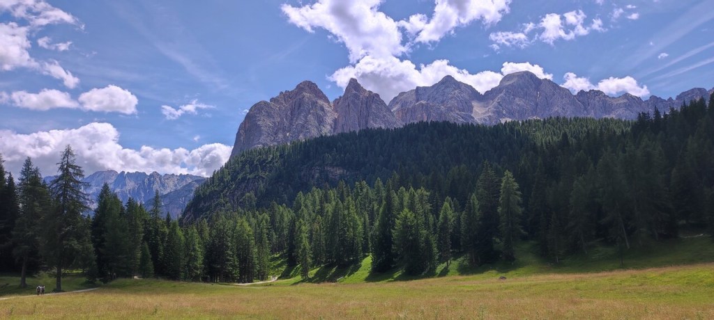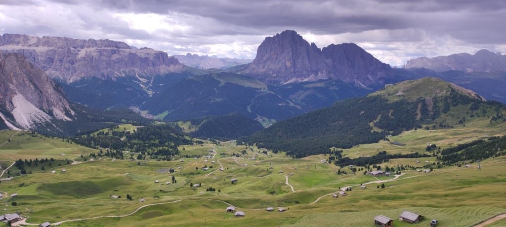 Salimos para Cortina D’Ampezzo, pero nada del propio pueblo porque es hiper-caro, así que nos quedamos bastante lejos, en Casso, pero nos venía relativamente bien para lo que queríamos hacer. La primera parada es el lago di Carezza y después nos dirigimos a Seceda, que es un pico de montaña con una estación de esquí, pero es muy agradable subir en verano y hacer un poco de senderismo. El teleférico se coge en Ortisei y cuesta una pasta; 39,5 euros por persona. Paseamos por Seceda un par de horas y luego fuimos a ver una iglesia birriosa que hay en medio de una explanada (la iglesia de San Juan) y que, supuestamente, es una foto idílica. Hay fotos por ahí muy buenas de la iglesia, pero a mí me pareció regular. También hay cerca una iglesia que se llama Santa Magdalena.