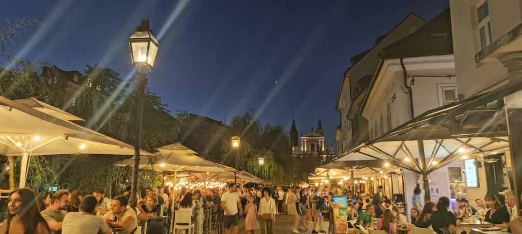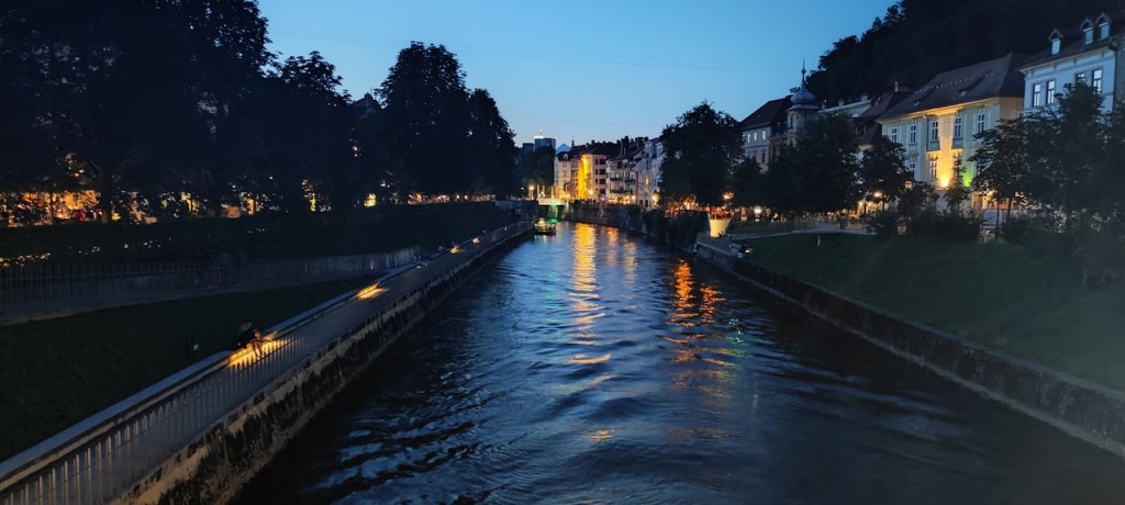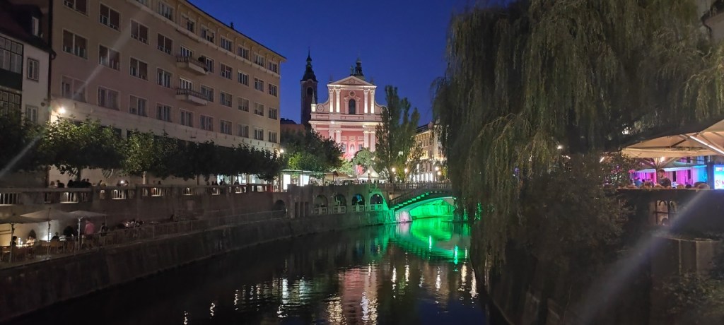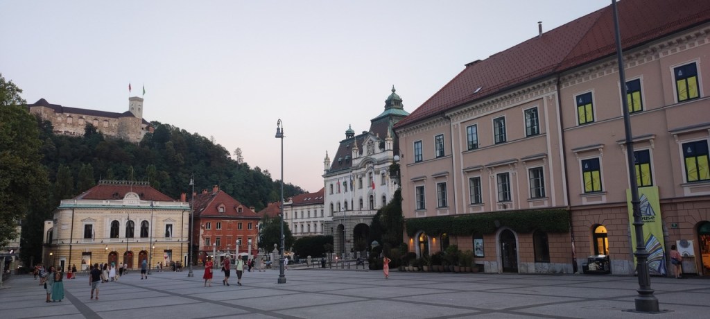 Después paramos en Skofja Loka, que tiene un casco histórico muy bonito y un castillo muy chulo. Y ya por último nos fuimos para Liubliana. Dejamos las cosas en el apartamento, hicimos compra para la cena y el desayuno y nos fuimos para el centro. Liubliana es una ciudad pequeña y se visita rápido, pero el centro es precioso, sobre todo de noche. Decidimos cenar allí al día siguiente porque es muy bonito.