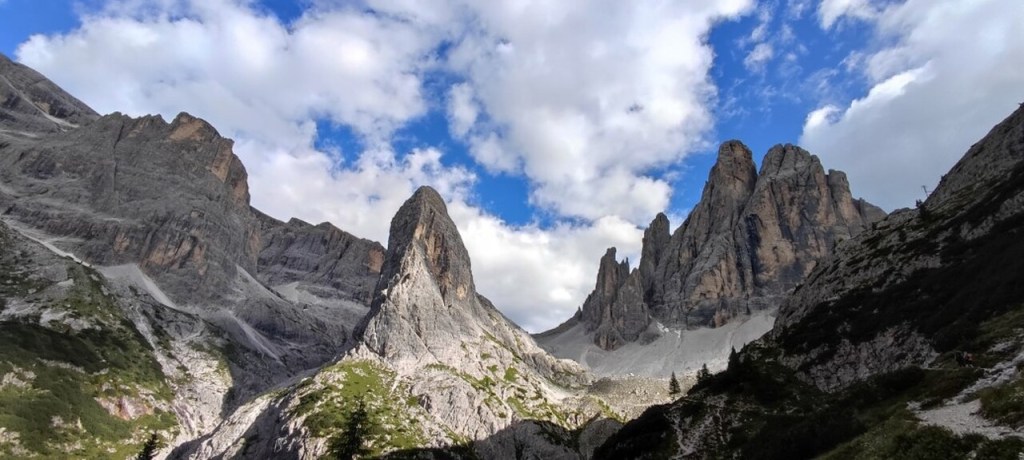 Nos levantamos y vamos a hacer una ruta para subir el Col della Puina. El final de la subida parece tan empinado y tan estrecho que pensé que no iba a poder bajar por el vértigo, pero después me di cuenta de que no iba a morir allí (Jeje). Arriba puedes cruzar hacia el otro pico y es muy chulo y finalmente hice el descenso sin ningún problema.