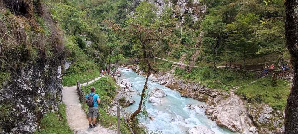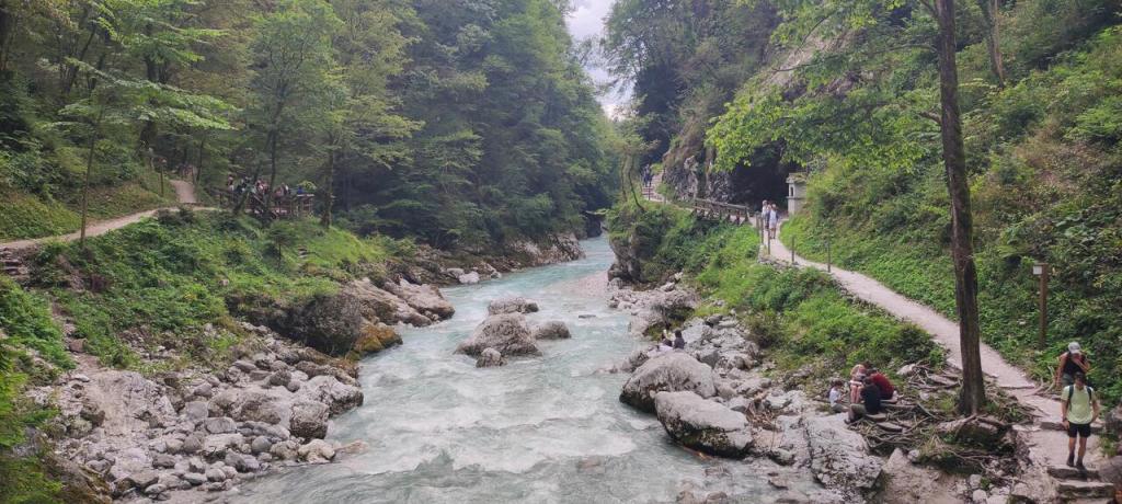 Salimos para Eslovenia y dormimos cerca del lago Bled, en Bovec. Dormimos dos días. Lo primero que fuimos a ver fue Tolmin Gorge. Es una garganta preciosa. Luego fuimos ya a Bovec pero antes pasamos por una cascada llamada Boka y para casa. Dejamos las cosas y fuimos al spar pero esa noche cenamos en el pueblo que había fiestas. Aquí algunas fotos de Tolmin Gorge:
