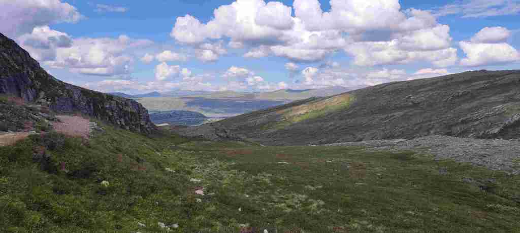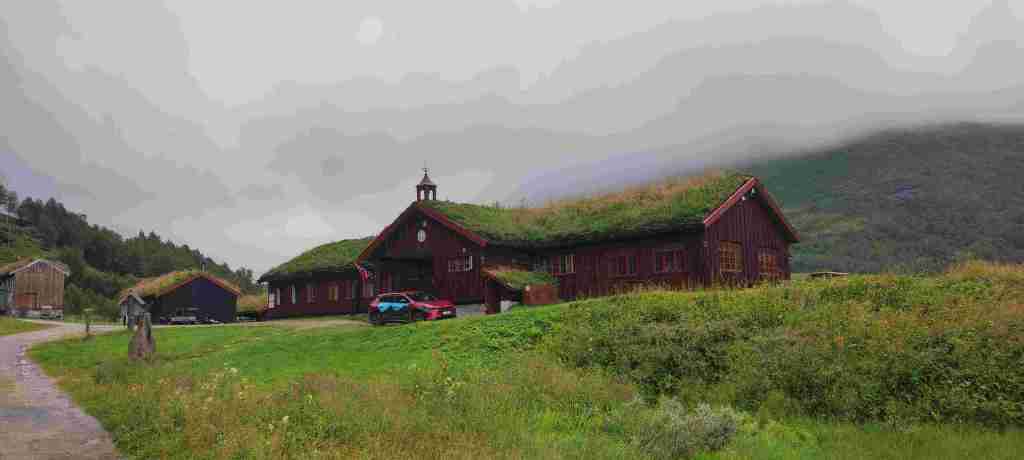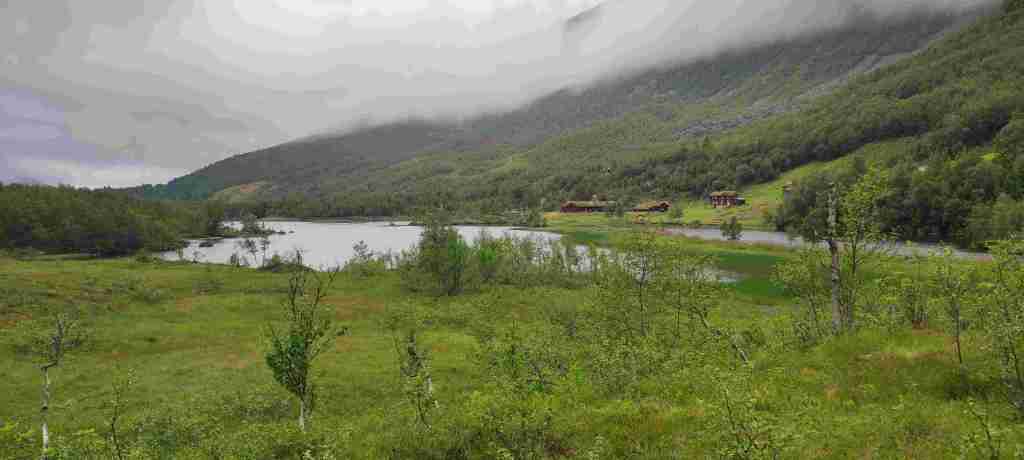 Nos levantamos y salimos para el siguiente alojamiento, en el que también pasaremos dos días. El pueblo más cercano: Sunndalsøra, aunque el alojamiento está a unos 20 minutos de allí. Es en una granja, en la que el dueño ha hecho un par de apartamento anexos a la casa principal para ganarse un dinerillo. Estaba lejos de Beitostølen, así que en el camino paramos a hacer un sendero (Lady Dala Musk Ox Safari) para ver bueyes almizcleros, aunque hace tanto calor que imaginamos que no íbamos a ver nada, como así fue. Al alojamiento llegamos tarde, así que en Sunndalsøra merendamos en una cafetería de un centro comercial, que era la única que cerraba más tarde, compramos algo para cenar en el super y nos fuimos a buscar la casa. Al llegar charlamos un poco con el dueño y a descansar, cenar y dormir. El apartamento era algo viejil, pero bastante amplio.