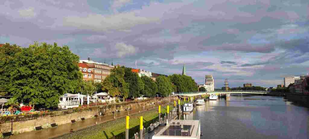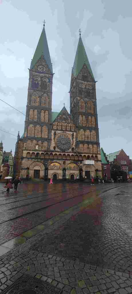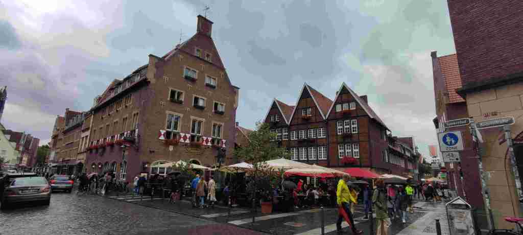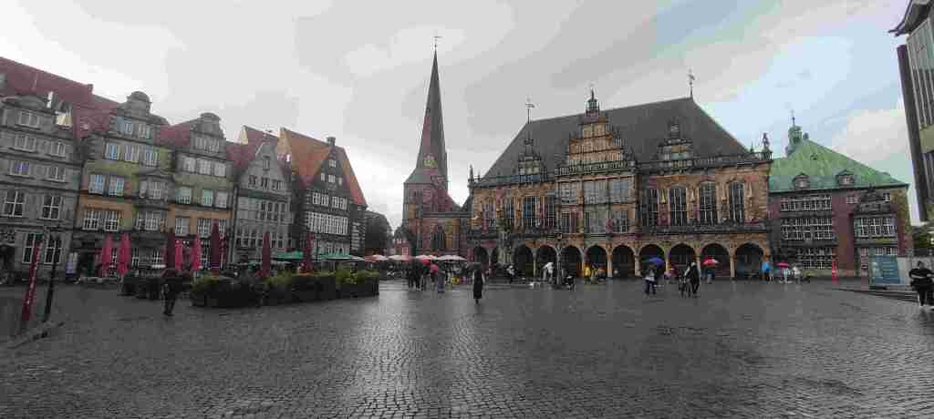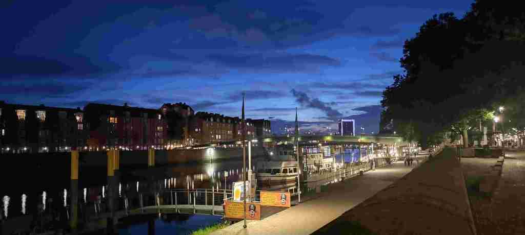 Allí nos quedábamos en un hotel que era como una fábrica restaurada pero que estaba bastante bien y bien comunicado con el centro en autobús. Nuevamente con aplicación un billete de un día para dos personas. Fuimos al centro, dimos un paseo (ya habíamos estado en Bremen hacía no mucho) y café. Y como estaba lloviendo volvimos al hotel, descansamos un poco y salimos a cenar en Feldmann’s Bierhaus. La zona en la que está tiene varios restaurantes y es una zona chula al lado del río Weser. Y ya después al hotel. Os dejamos las fotos de Bremen: