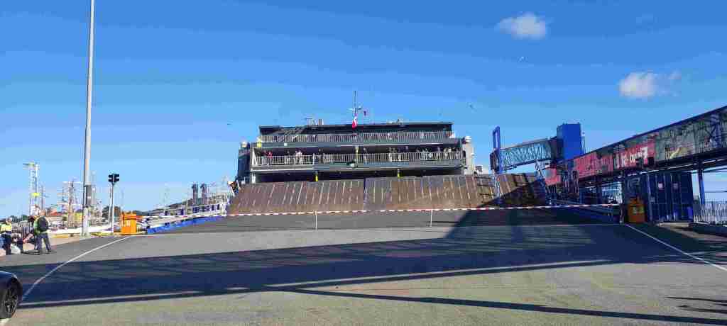 Salía a las 19:45, pero teníamos que estar allí mínimo una hora antes. Compramos unas ensaladas preparadas en el supermercado REMA 1000 para cenar en el barco y nos fuimos a embarcar. Un montón de gente para montarse en el barco. Resulta que es un barco gigantesco. Es como vacaciones en el mar.