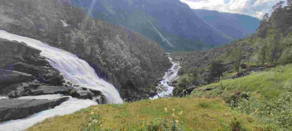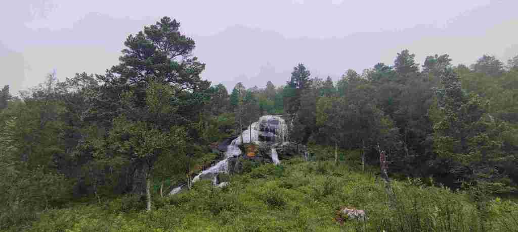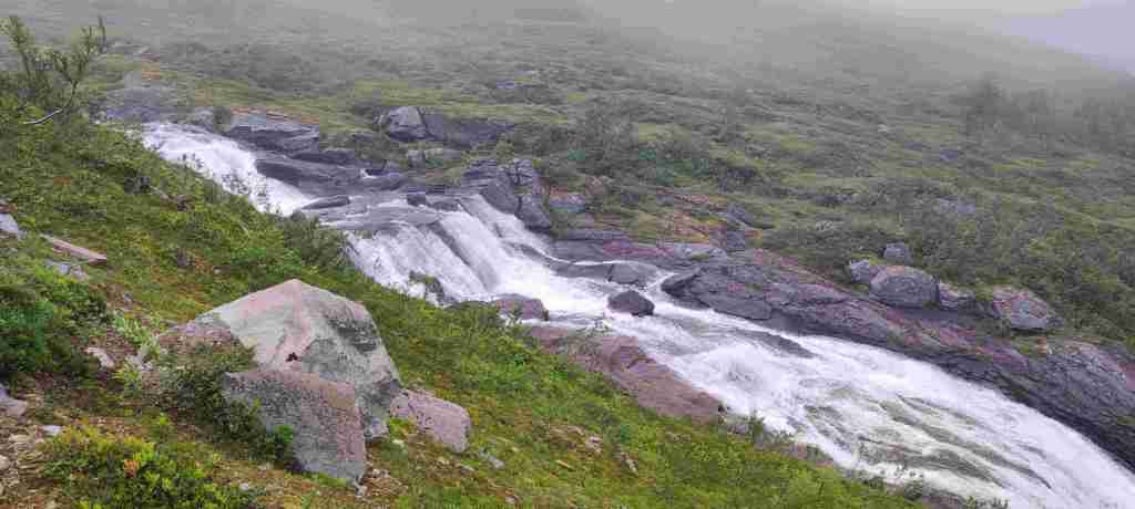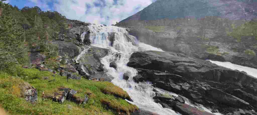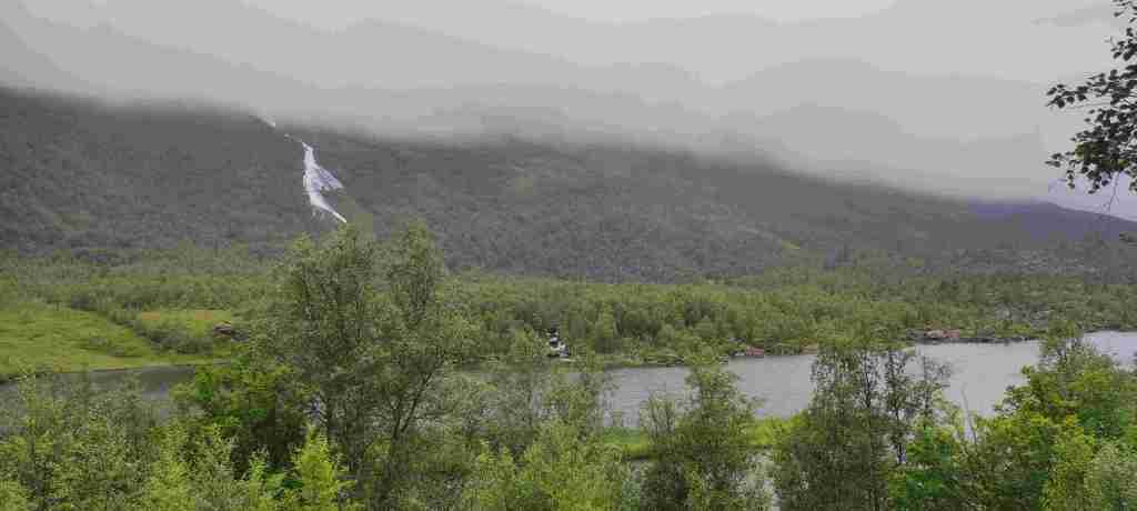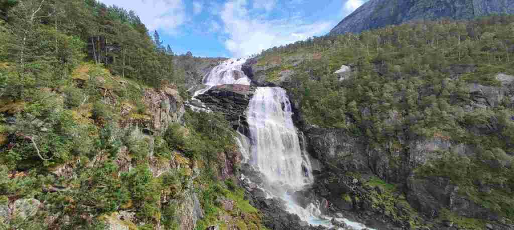 Nos levantamos y salimos para el siguiente alojamiento, que será solo un día. En el camino hay que pasar por Vallavik Kreisverkehr im Tunnel, un túnel que tiene dentro varias rotondas. Por lo visto es el único que existe así. En el camino al alojamiento vamos a hacer un sendero en el Husedalen valley para ver 4 cascadas. Es duro porque hay que subir, pero no demasiado. De todas formas, las cascadas son bonitas pero el sendero no merece mucho la pena. Estas son las fotos: