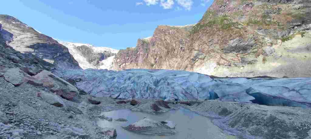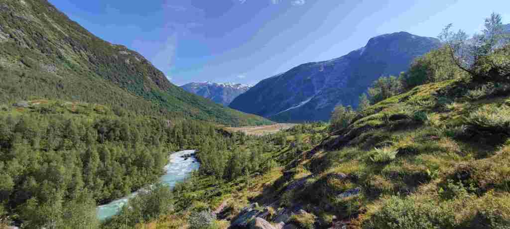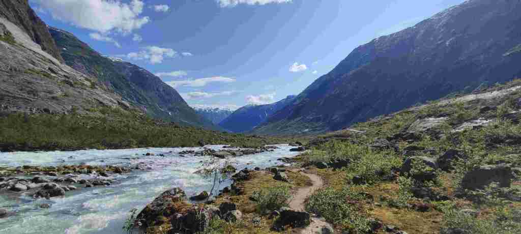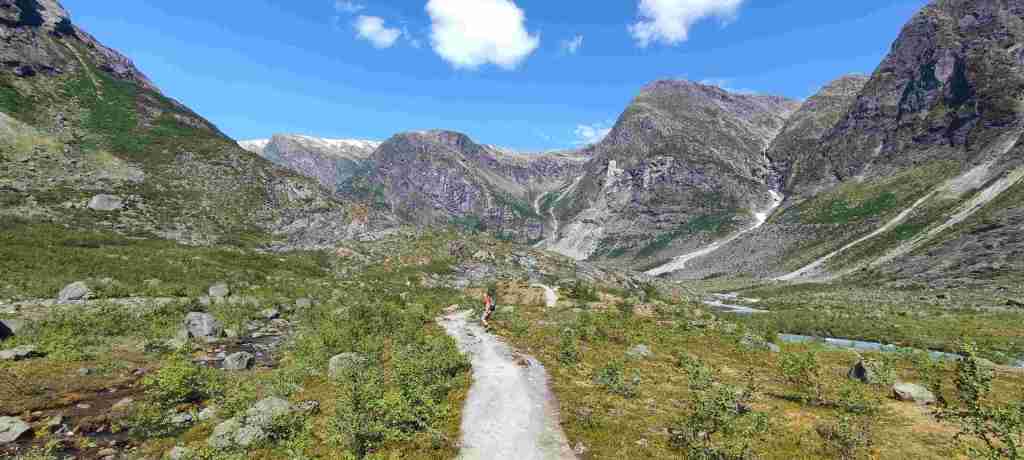 Hoy nos toca el que, a mi parecer, fue el mejor sendero de todos. Se trata de un sendero para ver un glaciar (Austerdalsbreen). En el camino hay algunas vistas preciosas. Para ir al sendero se aparca aquí: Tungestølen parkering. Hay que pagar y apuntarse como que has pagado, levantar una barrera y seguir unos km hasta el parking.