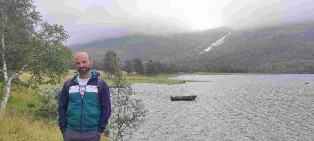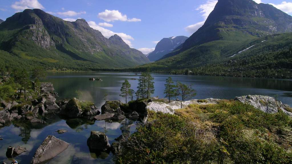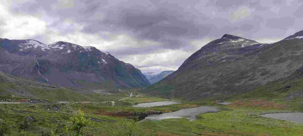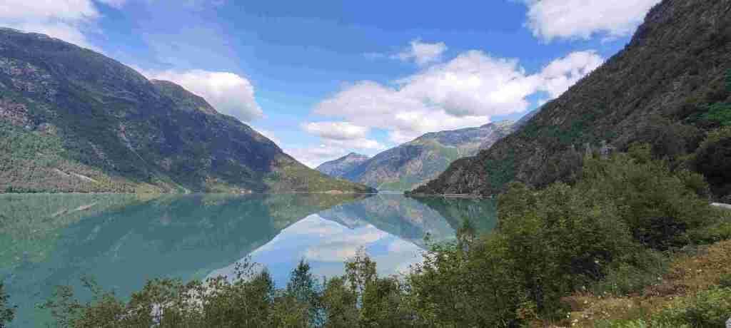Nos levantamos y tiramos para uno de los senderos más bonitos que íbamos a ver. El sendero se llama Innerdalen y se aparca aquí: Innerdal Parkeringsplass, Nerdal. Hay un primer parking un poco ilegal en el que se paga en metálico y en un sobre. Es un poco más barato y supongo que mucha gente no paga, pero decidimos ir al legal, en el que se puede pagar con tarjeta. Empezamos el sendero, pero el día estaba bastante nublado, así que decidimos no subir hasta la cima en la que hay un lago espectacular y hacer solo la primera parte. Pero terminamos tan pronto que, después de comer los bocatas decidimos seguir un poco. Y un poco lleva a otro poco … y acabamos en la cima después de un palizón de subida. Os dejamos aquí las fotos del día y una foto bajada de http://www.visitnorway.es en la que se ve la parte de arriba en un día soleado. Una pena: