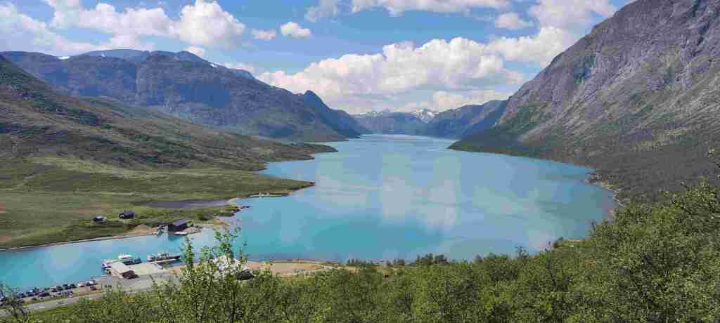 En este apartamento hacíamos dos noches. Nos levantamos, desayunamos y nos vamos para el segundo sendero: el Besseggen. Es más largo y tenemos que llevar bocatas. Se deja el coche aquí, Reinsvangen long term parking, y se coge un bus que te lleva hasta el comienzo. Normalmente la gente hace el sendero entero y luego coge un barquito que te lleva por el fiordo y te deja donde comenzaste. Muy chulo el trayecto. Nosotros lo hicimos al revés, aunque sabíamos que corríamos el riesgo de no llegar a tiempo, pero no nos importaba, porque las vistas más bonitas están a mitad del camino y si no nos daba tiempo volvíamos por el mismo sitio.