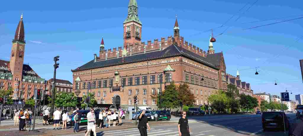 Copenhague es muy caro, por lo que como queríamos un alojamiento decente que no fuera mucho más de 100 euros la noche, nos quedamos a unos 20 minutos en coche del centro. Después de llegar al alojamiento fuimos al centro para tomar café y dar una vuelta por la zona del ayuntamiento. El aparcamiento en Copenhague es, como todo, también muy caro. Está dividido por zonas con colores: roja, verde, azul y amarilla (precio decreciente). Si vais a estar un rato medio largo, mejor evitar la roja y la verde pues los precios son disparatados. La azul está relativamente cerca.