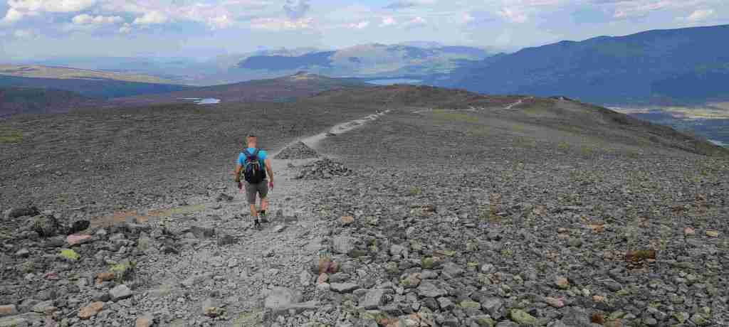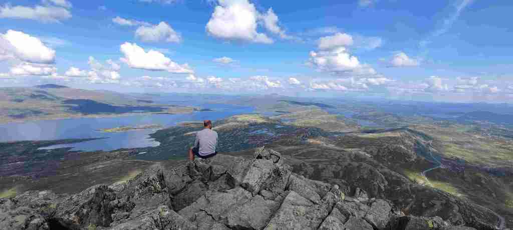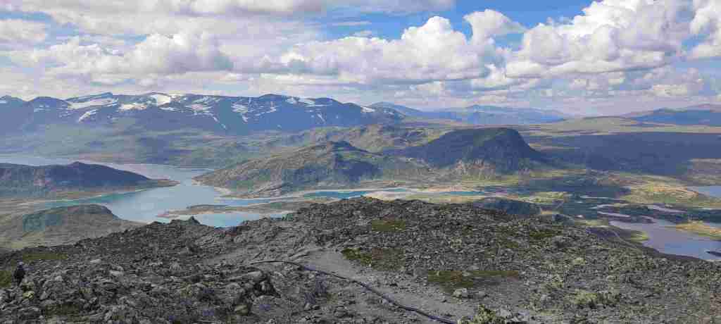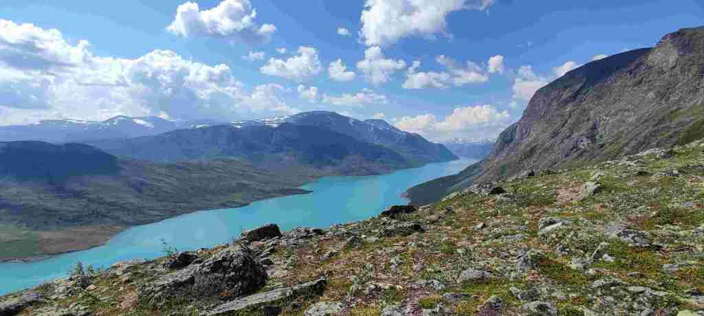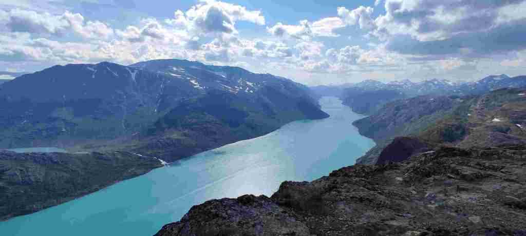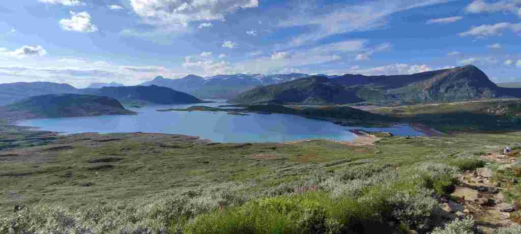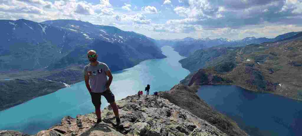 Después de comer fuimos al apartamento, dejamos las cosas, charlamos un poco con los dueños de la casa principal y nos fuimos a hacer nuestro primer sendero en Noruega: el del pico Bitihorn. Se puede ir por dos sitios distintos y decidimos subir por la parte más escarpada. Es bastante duro, sobre todo porque somos un poco intensos y vamos rápido. Las vistas son preciosas. Para bajar decidimos ir por el otro lado para cambiar, pero fue un error. Es mucho más largo y, sobre todo, el sendero termina a casi 4 km de donde teníamos el coche, así que muy cansados, nos tocó hacer 4 km más al terminar. De ahí al apartamento, ducha y cena. En Noruega comimos un montón de noches salmón. Está muy bien de precio y comprábamos unos aderezos con los que quedaba bastante bueno. Salmón y algún que otro acompañamiento. Estas son las fotos del sendero: