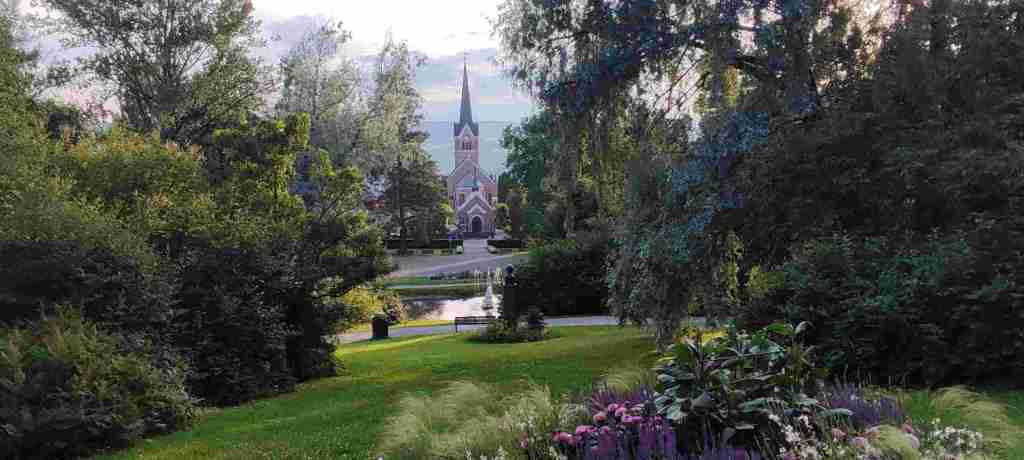 Vimos de lejos las pistas de salto de esquí y luego un parque con un estanque en el que se estaba bañando la gente y se me antojó bañarme, pero no llevábamos bañador puesto y decidimos que lo mismo nos bañábamos después, porque estaba muy cerca del apartamento y oscurecía muy tarde. Dimos vuelta por Lillehammer, que no tiene mucho que ver, pero es bonito. Es bastante conocido por la estación de esquí, pero no tiene mucho más. A la vuelta nos bañamos y ya cenamos en el apartamento. Estas son las fotos del día: