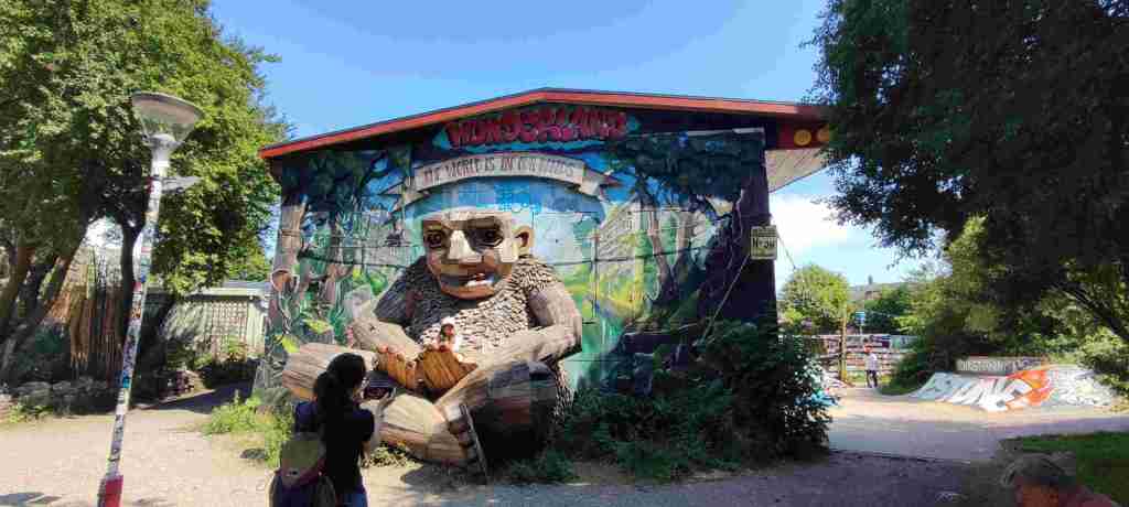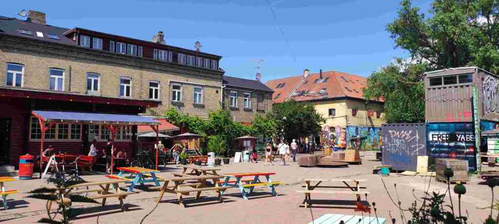 Nos levantamos y desayunamos. Pasamos el día en Copenhague porque nos quedaba mucho que ver. Nosotros fuimos en coche a varios sitios. Primero aparcamos cerca del Nørrebros Theater para ver el mercado de alimentos frescos (TorvehallerneKBH), el jardín botánico y el castillo de Rosenborg. Luego cambiamos el coche de sitio para ir a Kristianía. Nos recomendaron un sitio gratuito para aparcar muy cerca de Kristianía, justo al lado de unos campos de fútbol: https://maps.app.goo.gl/fjja8yLaR184TBC28